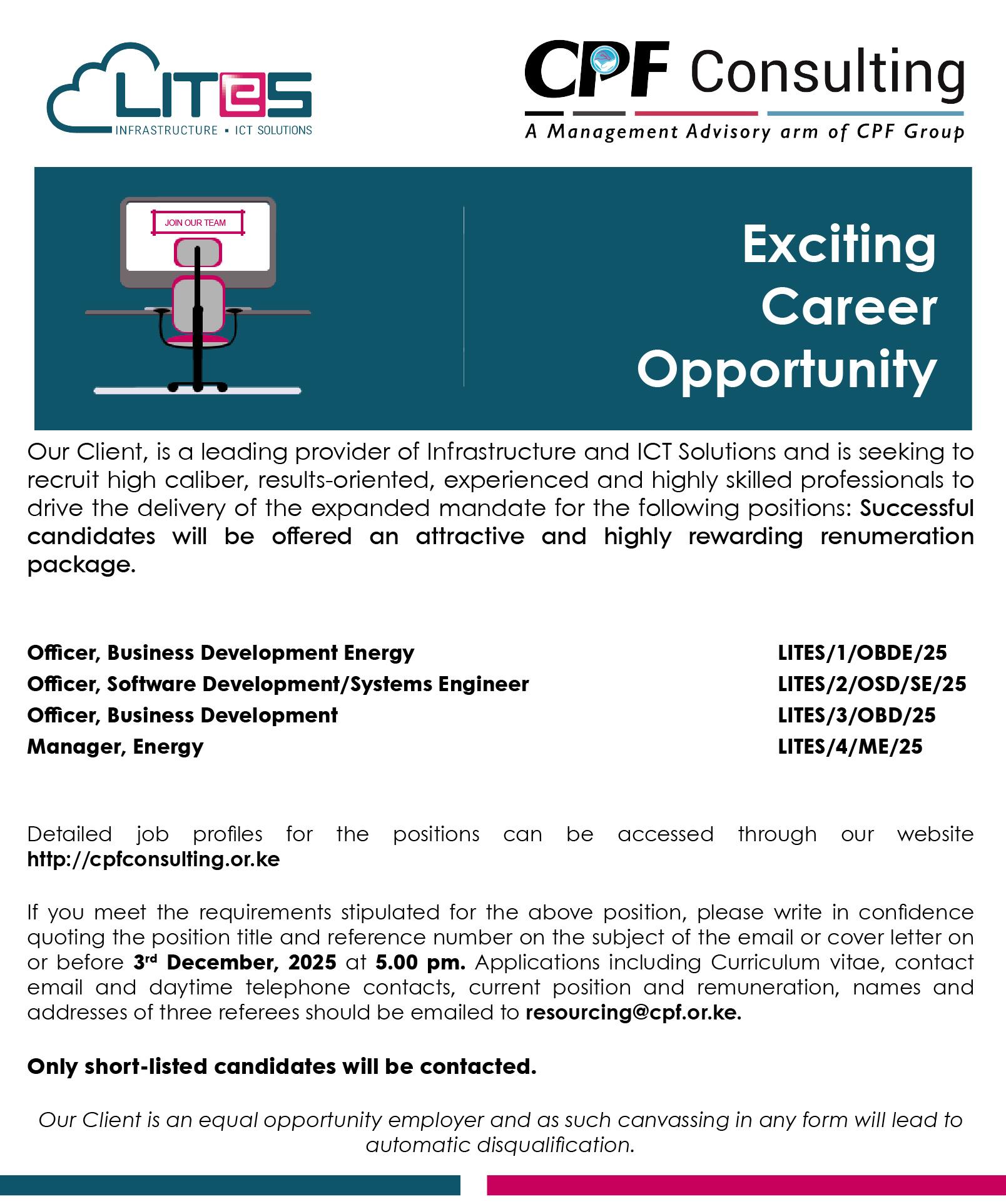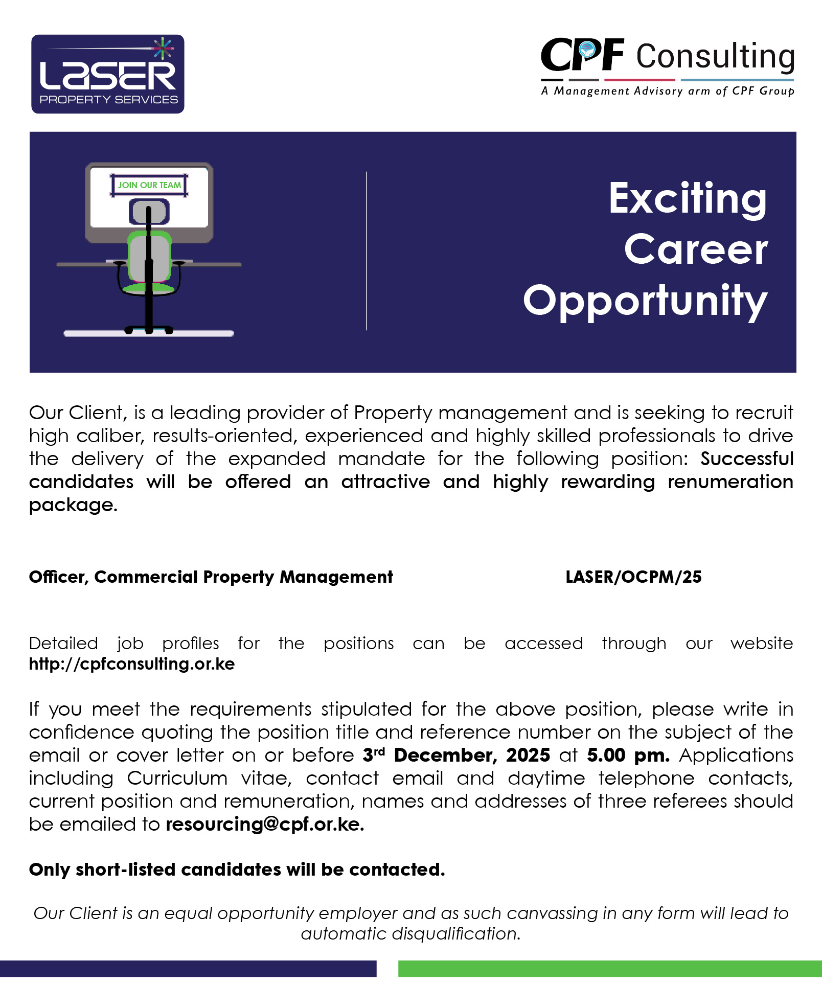Our client a deposit taking Sacco regulated by SASRA with asset base of 1.2 billion is seeking to recruit high caliber, results-oriented, experienced and highly skilled professionals to drive the delivery of its expanded mandate for the following positions: